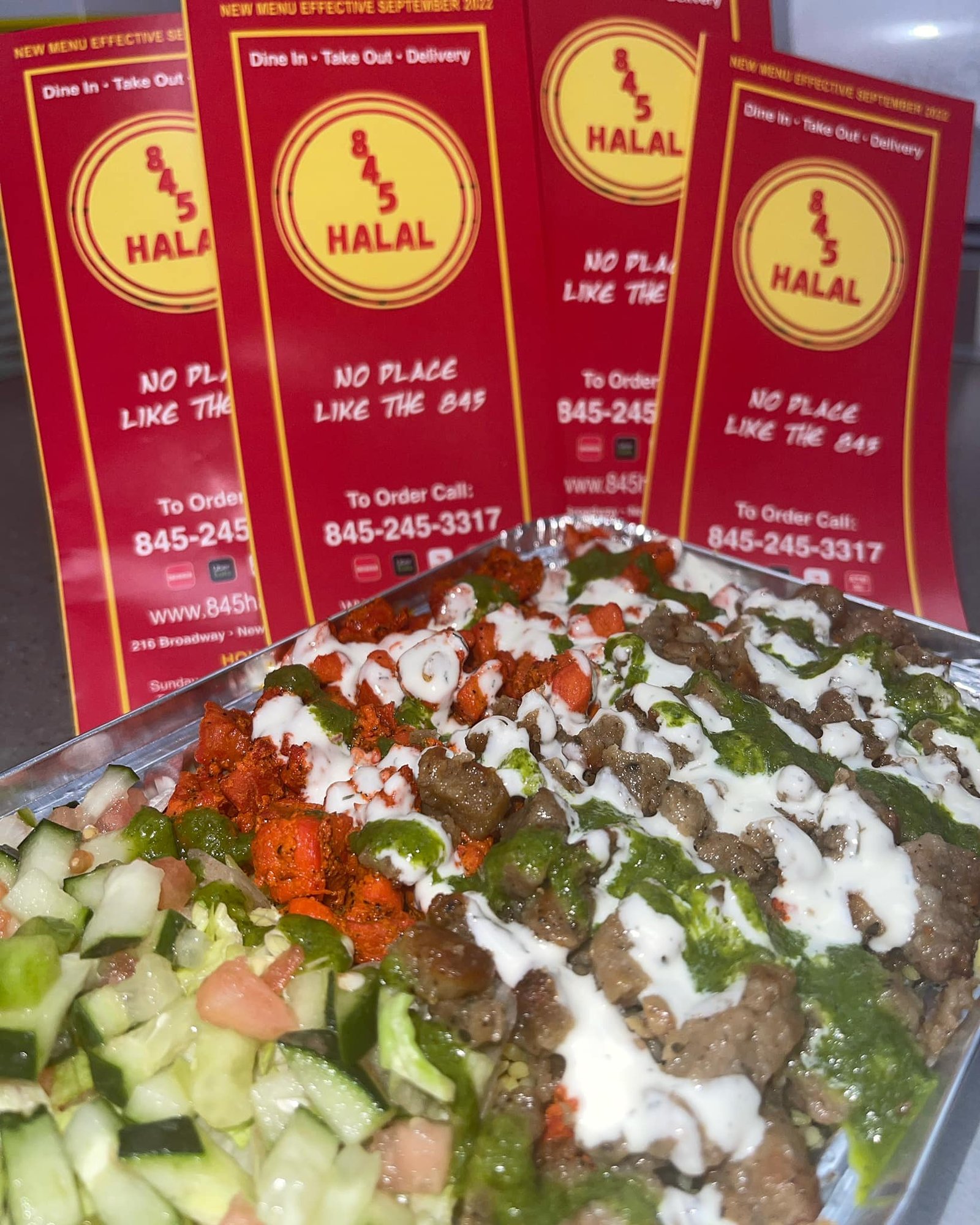 845 Halal is the place where great cooking and fantastic vibes meet. Our food is fresh, delicious, and affordable. We welcome diners from around the 845 region. We started our business with one goal in mind: provide the 845 region with authentic American Halal food. We are bringing the “Halal Cart Food” to the 845 with a special twist. Thanks to our experience and dedication, we’ve managed to become masters of the craft. Providing dishes that are fresh, filling and simply unforgettable.