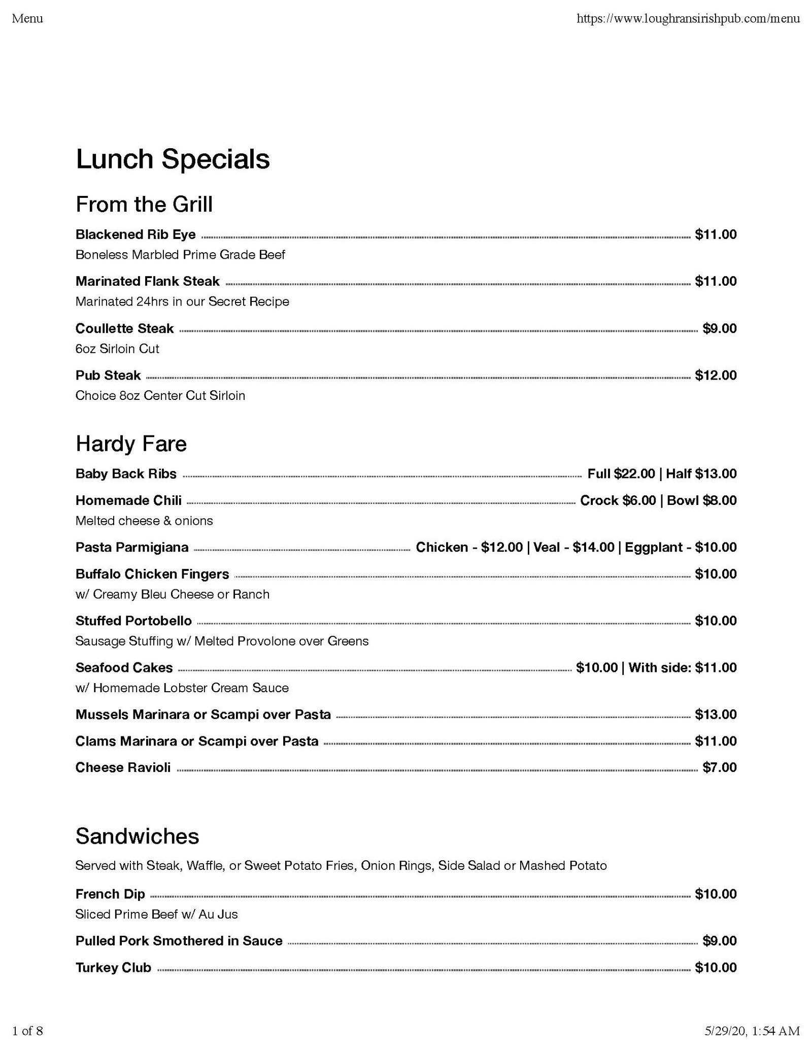 Since opening our doors in 1986 Loughran’s Restaurant has become a staple in the Hudson Valley. Over the past few decades Loughran’s has always kept a great down home feel while serving up huge portions of exquisite eats! From farm fresh salads, and sandwiches to fresh seafood and prime cuts of beef, we’ve got you covered. Weekly Specials that are inventive and delicious keep our customers coming back time and time again. With over 50 ice cold brews to choose from, a simple yet tasteful selection of wines and seasonal cocktail list you’re sure to find the perfect pairing for your meal.